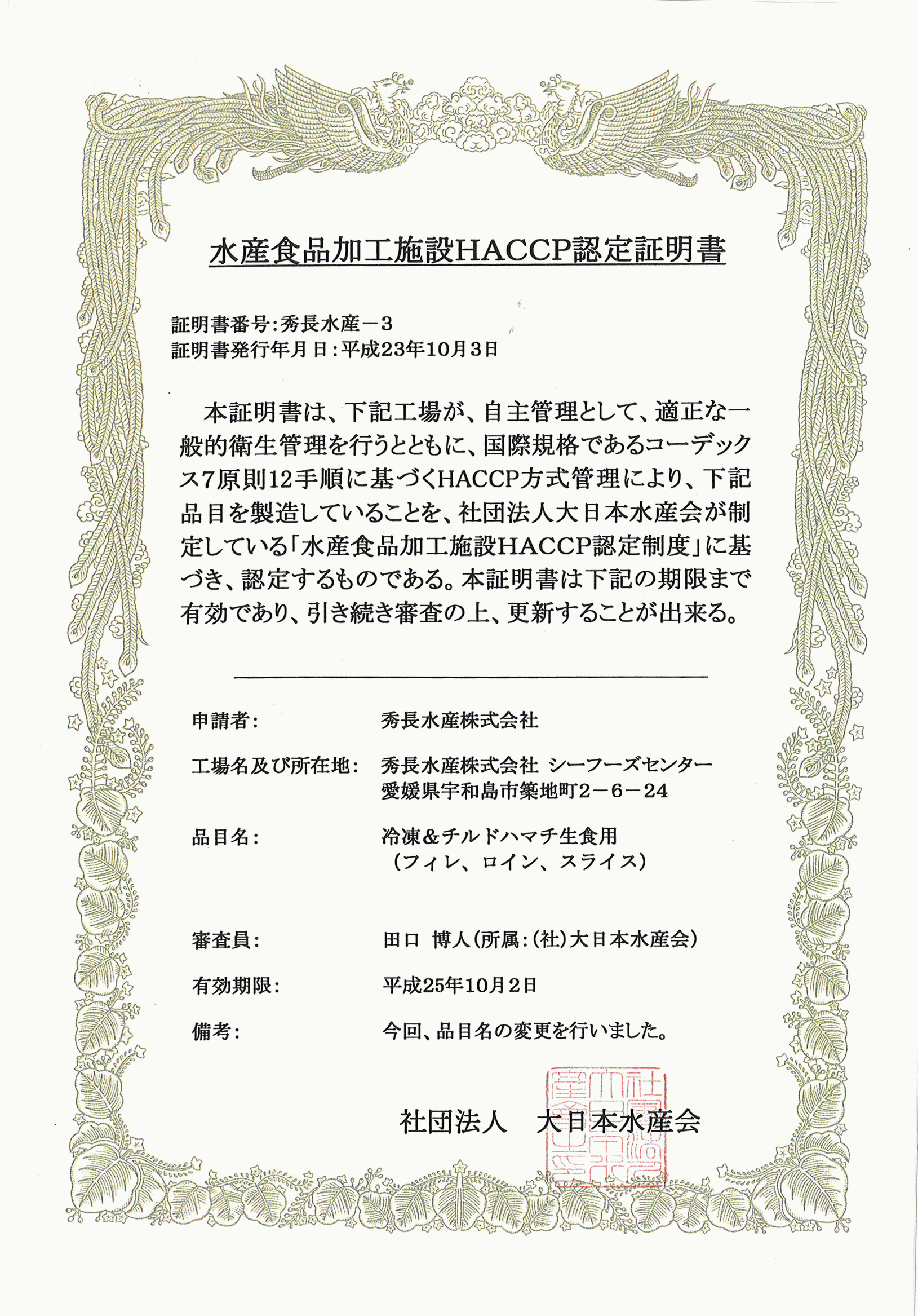 秀長水産(株)では、これからもお客様の食卓へお届けする商品の品質・美味しさ・鮮度へのこだわりを形にして、ご提供して参ります。