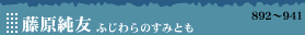 西国で海賊討伐を命ぜられていたが、自ら海賊を率いて朝廷に反抗、瀬戸内海横行の海賊の棟梁となり、大宰府を襲った。その後、小野好古らによって反乱は鎮圧された。宇和島市の日振島を反乱の拠点としていたことで知られている。 |